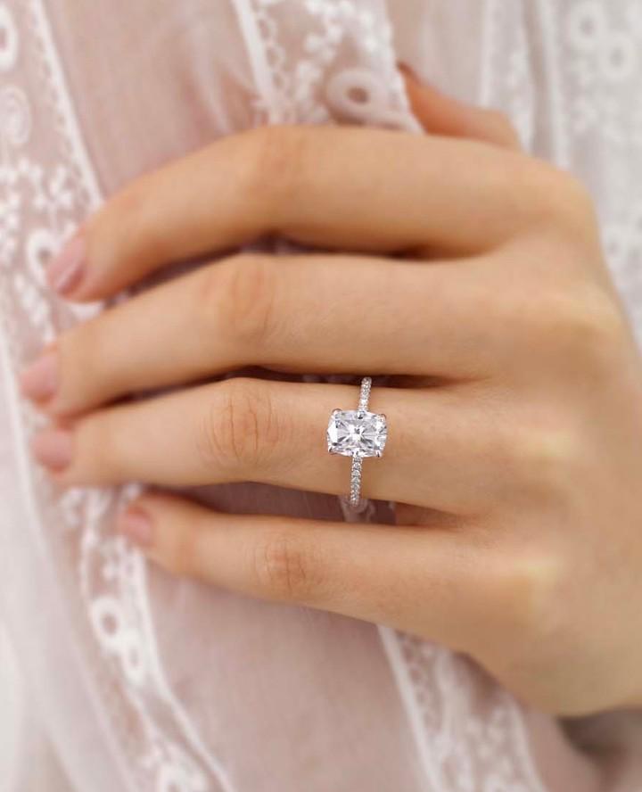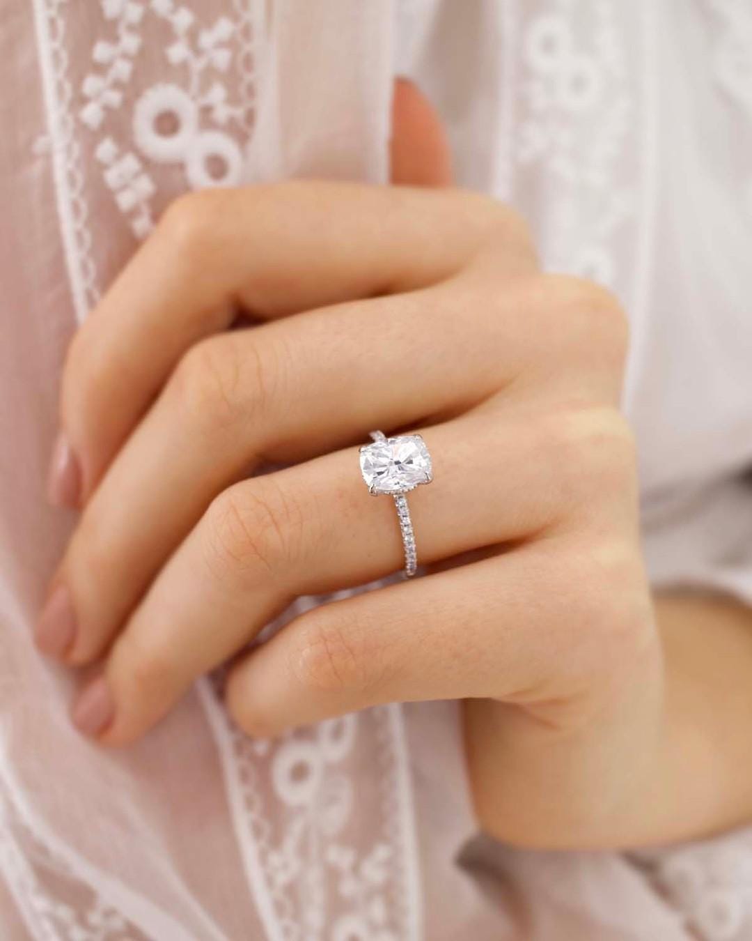 2 Ct Elongated Cushion Moissanite Engagement Ring Hidden Halo Pave Band White Gold Solitaire Ring Lab Grown Diamond Alternative Wedding Ring / Art Deco Ring / Engagement Ring / Wedding Ring / Diamond Ring / Handmade Ring / Fine Jewelry / Spiral Ring / Rings for Women / Stunning Ring / Personalized Gift / Promise Ring / Proposal Ring / Round Pave Ring / Birthday Gift / Unique Ring / Gift for Girlfriend / Pear Lab Diamond / Lab Grown Diamond