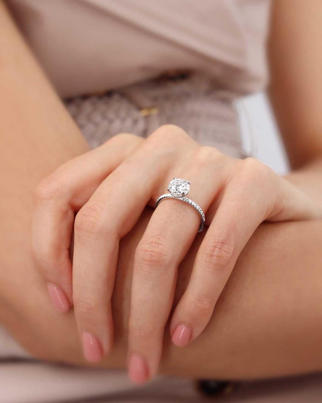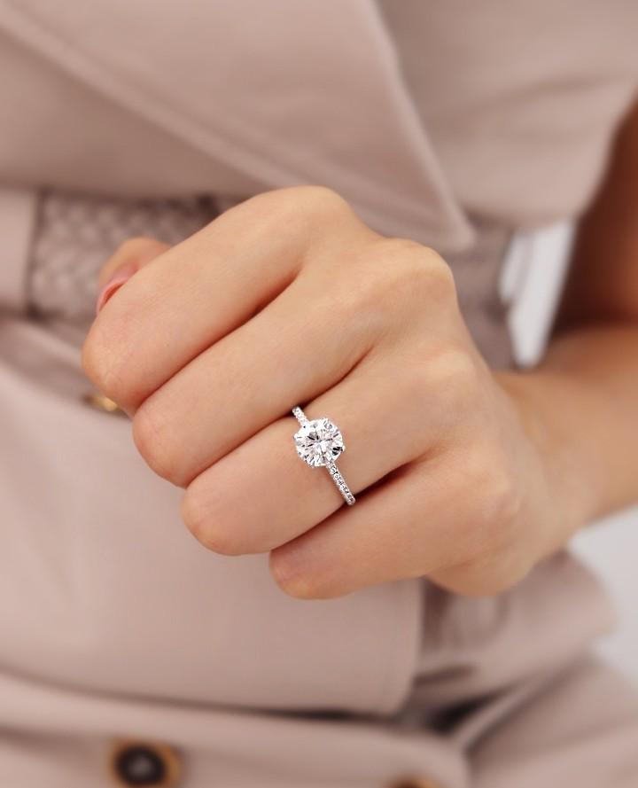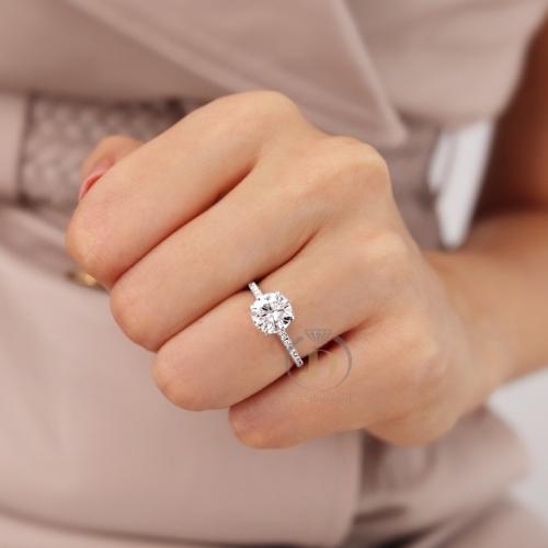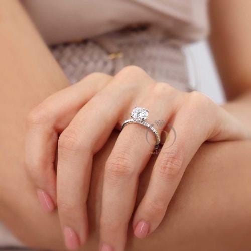 2 Ct Round Cut Moissanite Engagement Ring Hidden Halo Pave Band White Gold Solitaire Ring Classic Lab Grown Diamond Alternative Wedding Ring