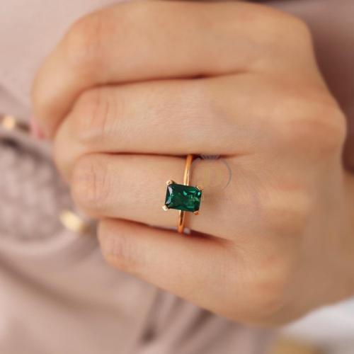 2 CT Emerald Gemstone Engagement Ring 14k Solid Yellow Gold Solitaire Ring Delicate Daily Wear Anniversary Gift Handmade Bridal Jewelry