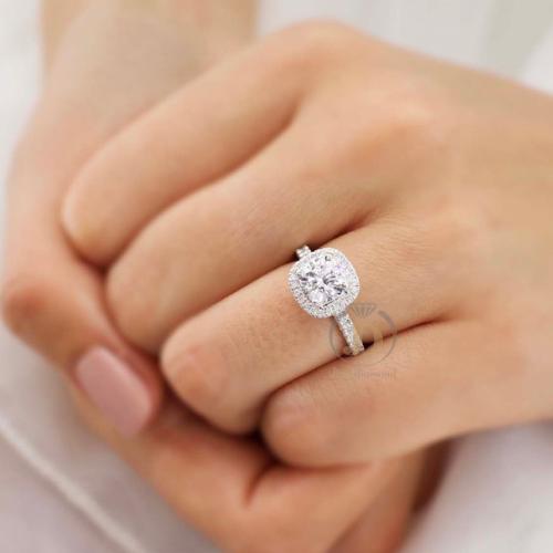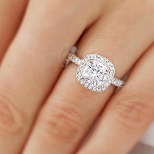 Stunning 2 CT Cushion Cut Lab Grown Diamond Engagement Ring with Halo 14k White Gold Vintage Inspired Wedding Band Set Moissanite Ring Gift / Art Deco Ring / Engagement Ring / Wedding Ring / Diamond Ring / Handmade Ring / Fine Jewelry / Spiral Ring / Rings for Women / Stunning Ring / Personalized Gift / Promise Ring / Proposal Ring / Round Pave Ring / Birthday Gift / Unique Ring / Gift for Girlfriend / Pear Lab Diamond / Lab Grown Diamond