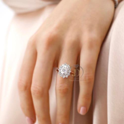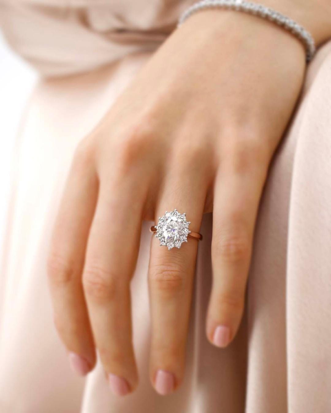 1 CT Elegant Oval Lab Grown Diamond Halo Engagement Ring 14k Rose Gold Vintage Inspired Moissanite Statement Bridal Ring Handmade Jewelry