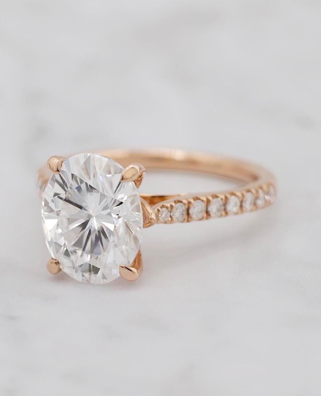 2 CT Stunning Oval Moissanite Engagement Ring Delicate Rose Gold Pave Band Bridal Ring Lab Grown Diamond Art Deco Statement Jewelry For Her