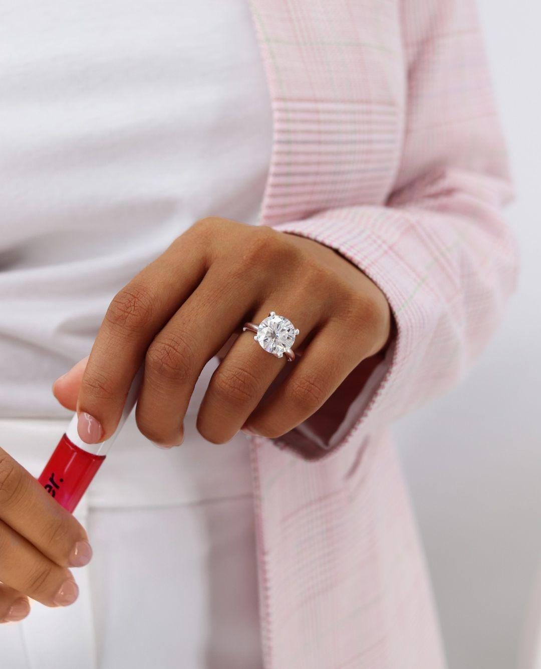3 CT Round Cut Moissanite Engagement Ring Solitaire 14k White Gold Everyday Wear Ring Stunning Lab Grown Diamond Anniversary Ring Gift