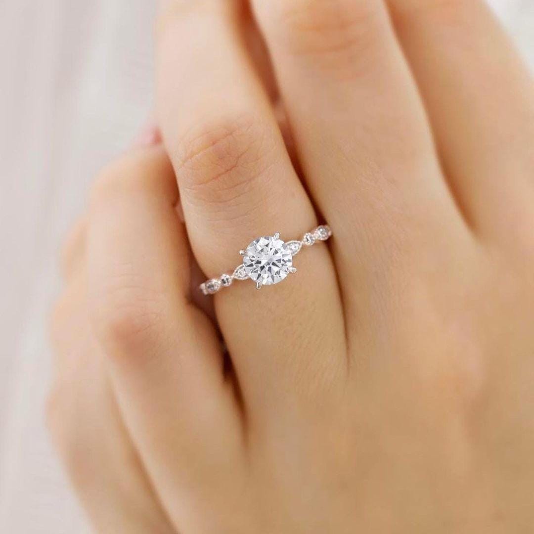 1.50 CT Round Cut Lab Grown Diamond Engagement Ring 14K White Gold Solitaire Ring Dainty Moissanite Promise Minimalist Bridal Ring Gift