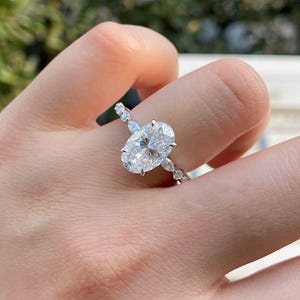 Oval Cut Moissanite Engagement Ring Hidden Halo 14k Rose Gold Pave Band Delicate Bridal Promise Lab Grown Diamond Stunning Ring For Her