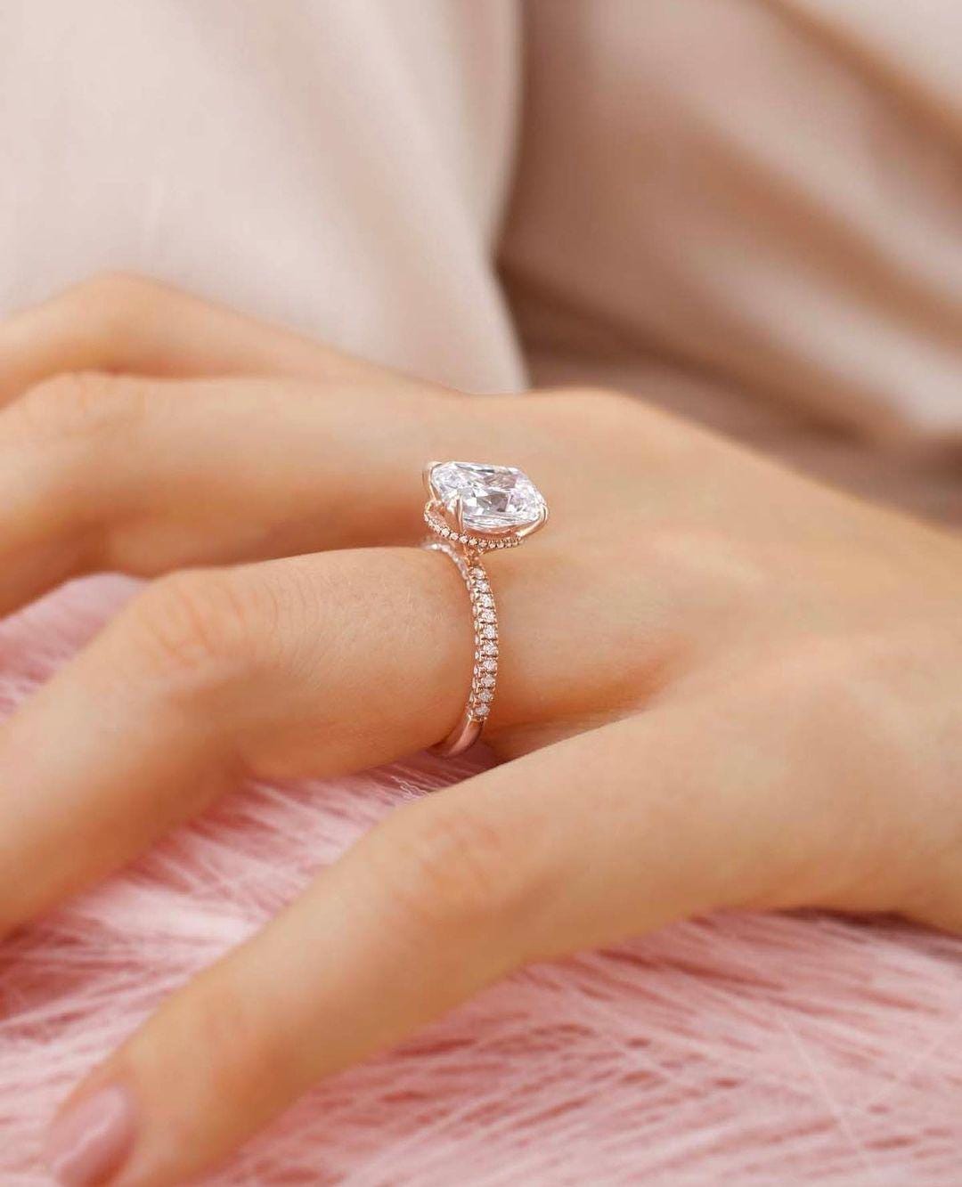 Oval Cut Moissanite Engagement Ring Hidden Halo 14k Rose Gold Pave Band Delicate Bridal Promise Lab Grown Diamond Stunning Ring For Her / Art Deco Ring / Engagement Ring / Wedding Ring / Diamond Ring / Handmade Ring / Fine Jewelry / Spiral Ring / Rings for Women / Stunning Ring / Personalized Gift / Promise Ring / Proposal Ring / Round Pave Ring / Birthday Gift / Unique Ring / Gift for Girlfriend / Pear Lab Diamond / Lab Grown Diamond