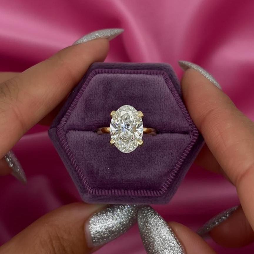 Oval Moissanite Engagement Ring Solitaire Hidden Halo Gold Promise Ring Minimalist Bridal Ring Lab Grown Diamond Anniversary Gift for Her