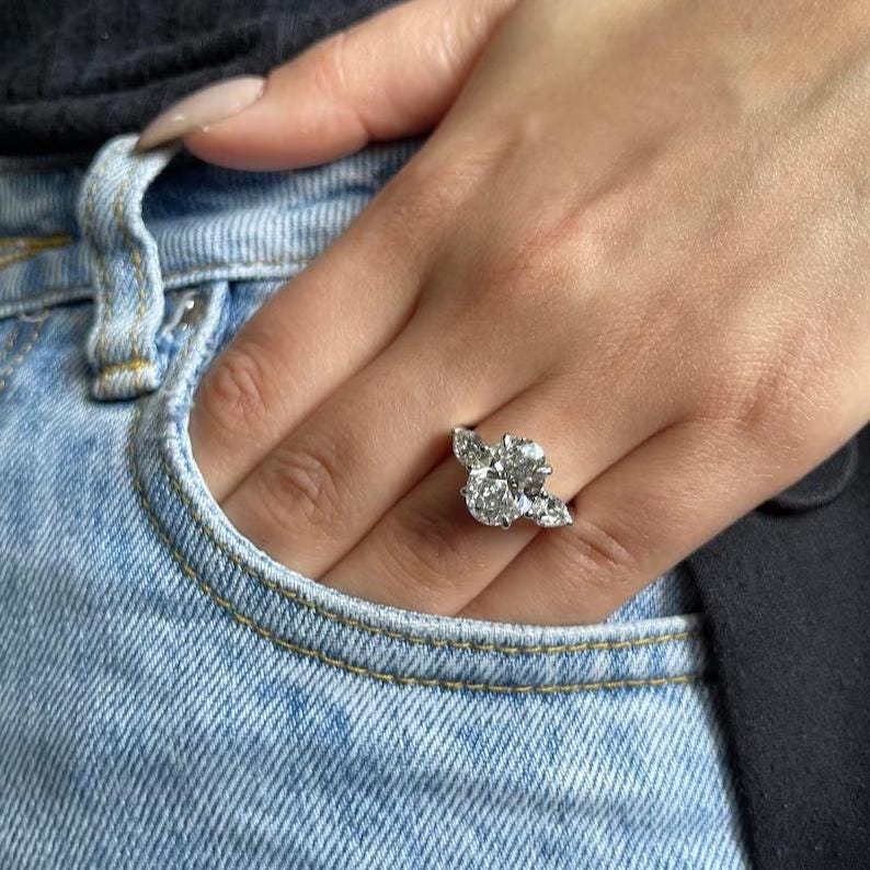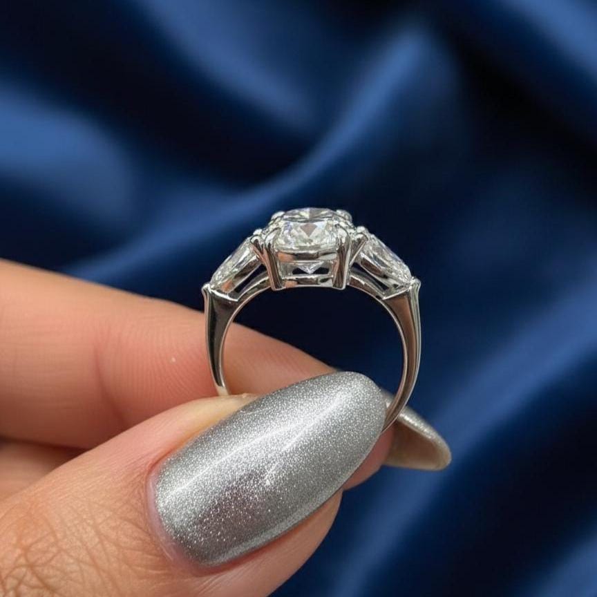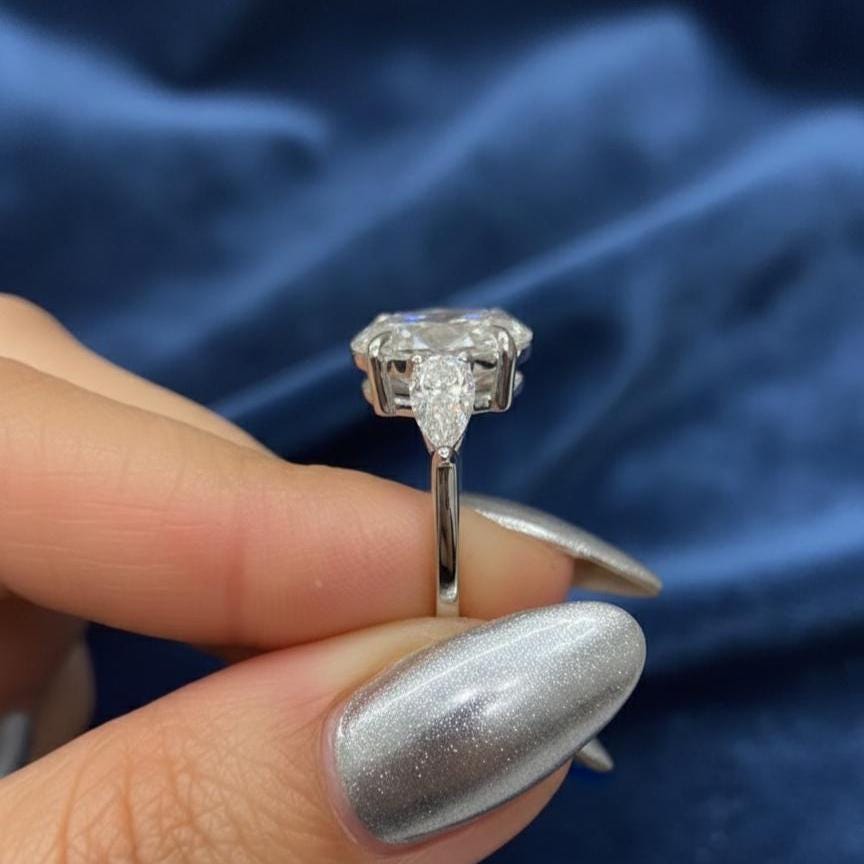 2.5 CT Oval Three Stone Moissanite Engagement Ring Pear Side Stone Ring, Lab Grown Diamond Alternative White Gold Wedding Bridal Ring Gift / Art Deco Ring / Engagement Ring / Wedding Ring / Diamond Ring / Handmade Ring / Fine Jewelry / Spiral Ring / Rings for Women / Stunning Ring / Personalized Gift / Promise Ring / Proposal Ring / Round Pave Ring / Birthday Gift / Unique Ring / Gift for Girlfriend / Pear Lab Diamond / Lab Grown Diamond