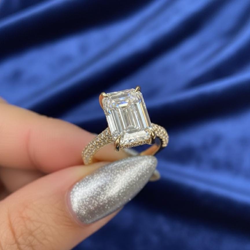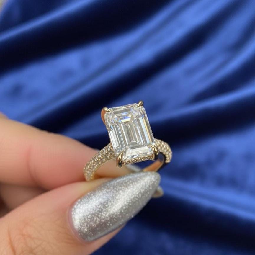 2.5CT Emerald Cut Engagement Ring Hidden Halo Moissanite Ring 14K Gold Pave Band Minimalist Lab Grown Diamond Solitaire Promise Ring for Her/ Art Deco Ring / Engagement Ring / Wedding Ring / Diamond Ring / Handmade Ring / Fine Jewelry / Spiral Ring / Rings for Women / Stunning Ring / Personalized Gift / Promise Ring / Proposal Ring / Round Pave Ring / Birthday Gift / Unique Ring / Gift for Girlfriend / Pear Lab Diamond / Lab Grown Diamond