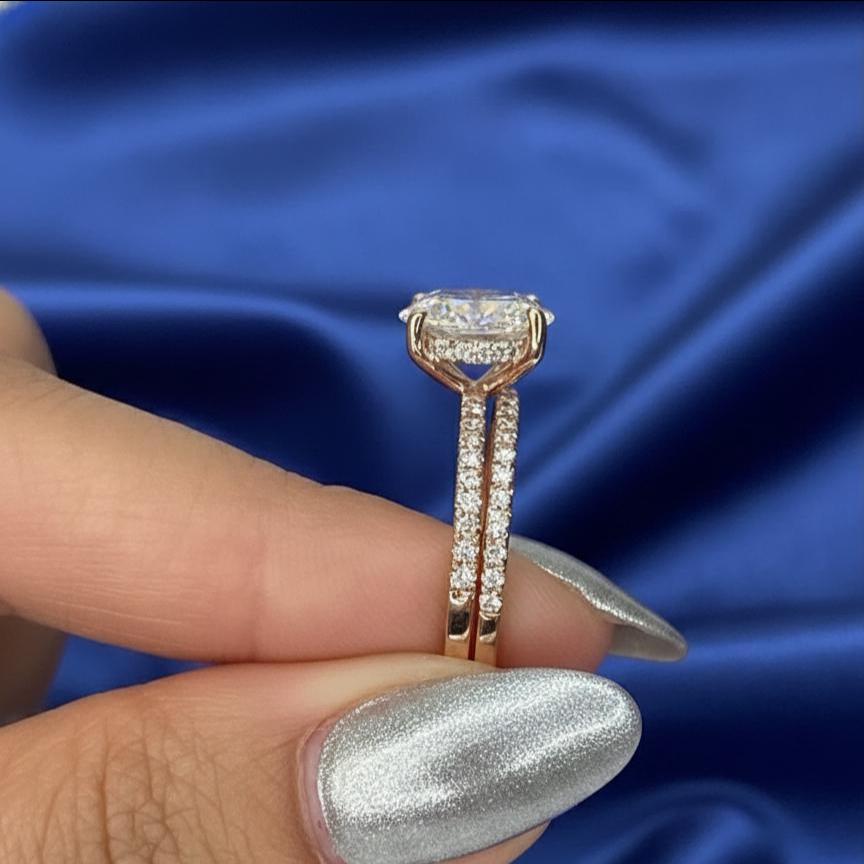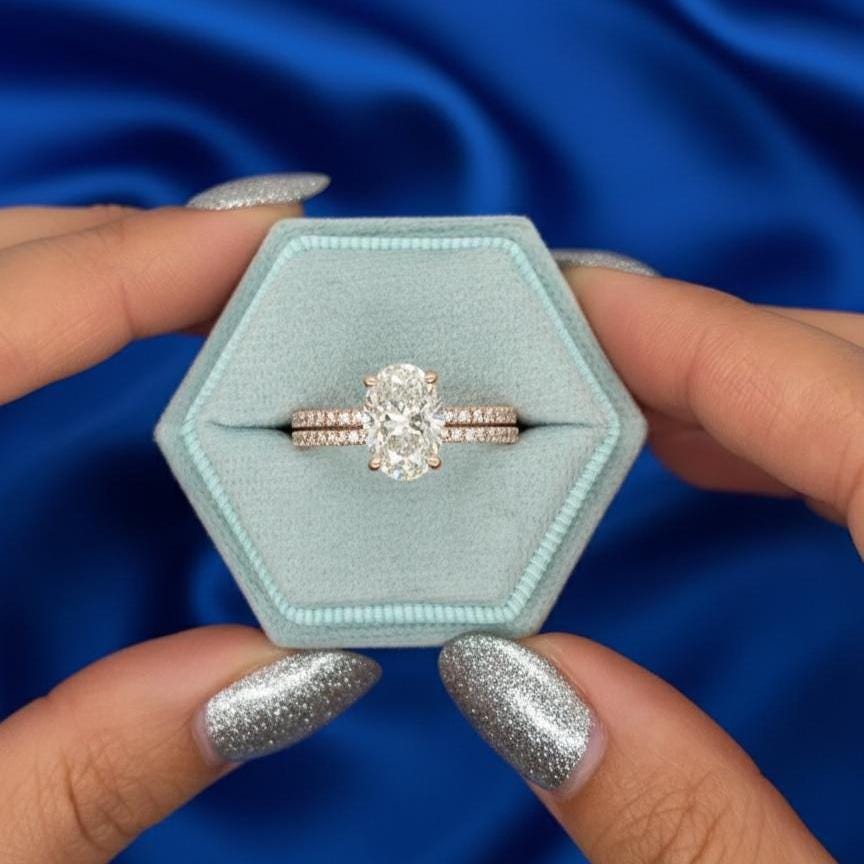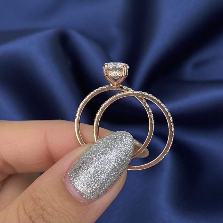 2CT Oval Cut Moissanite Engagement Ring Set Rose Gold Pave Band Solitaire Lab Grown Diamond Bridal Set Promise Ring for Her Wedding Ring Set / Art Deco Ring / Engagement Ring / Wedding Ring / Diamond Ring / Handmade Ring / Fine Jewelry / Spiral Ring / Rings for Women / Stunning Ring / Personalized Gift / Promise Ring / Proposal Ring / Round Pave Ring / Birthday Gift / Unique Ring / Gift for Girlfriend / Pear Lab Diamond / Lab Grown Diamond