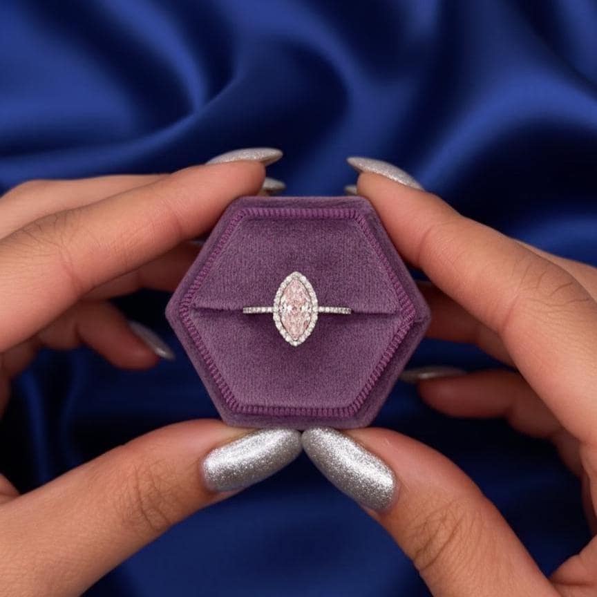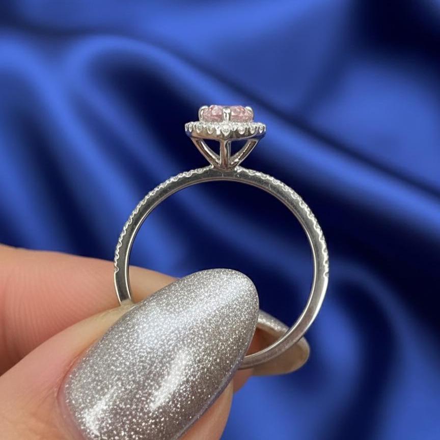 1.50 CT Marquise Pink Moissanite Engagement Ring Halo Bridal Ring White Gold Promise Ring Minimalist Wedding Ring Anniversary Gift for Her