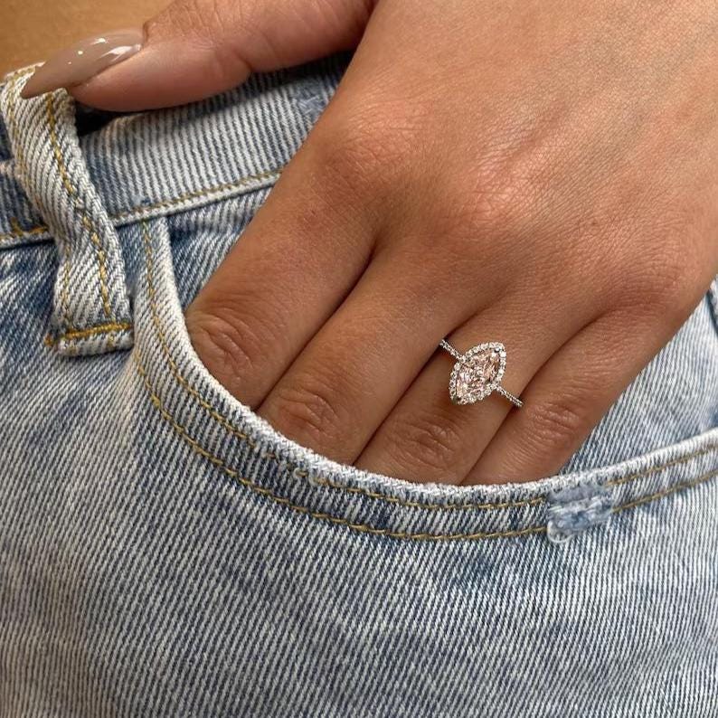 1.50 CT Marquise Pink Moissanite Engagement Ring Halo Bridal Ring White Gold Promise Ring Minimalist Wedding Ring Anniversary Gift for Her / Art Deco Ring / Engagement Ring / Wedding Ring / Diamond Ring / Handmade Ring / Fine Jewelry / Spiral Ring / Rings for Women / Stunning Ring / Personalized Gift / Promise Ring / Proposal Ring / Round Pave Ring / Birthday Gift / Unique Ring / Gift for Girlfriend / Pear Lab Diamond / Lab Grown Diamond