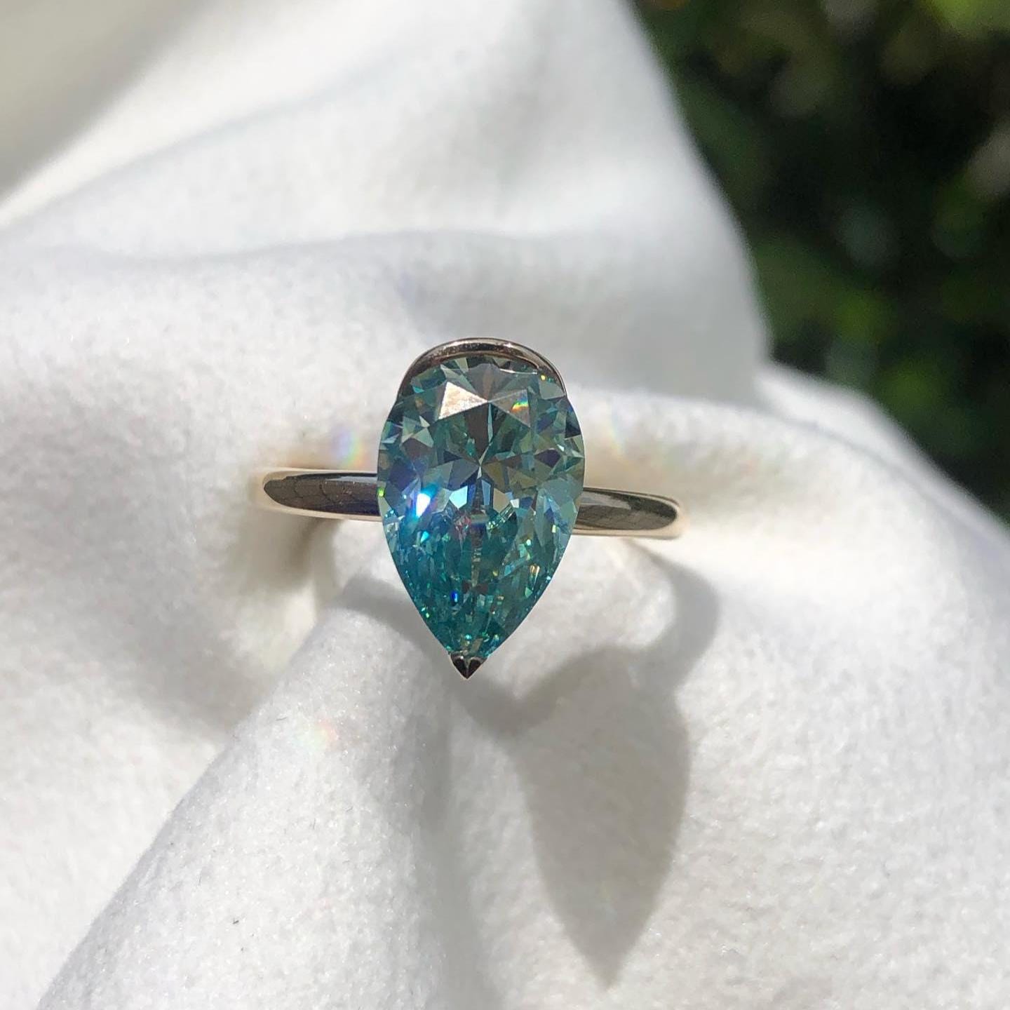 2.5 CT Blue Pear Cut Moissanite Engagement Ring Solitaire White Gold Ring Unique Promise Ring Minimalist Bridal Ring Alternative Engagement / Art Deco Ring / Engagement Ring / Wedding Ring / Diamond Ring / Handmade Ring / Fine Jewelry / Spiral Ring / Rings for Women / Stunning Ring / Personalized Gift / Promise Ring / Proposal Ring / Round Pave Ring / Birthday Gift / Unique Ring / Gift for Girlfriend / Pear Lab Diamond / Lab Grown Diamond
