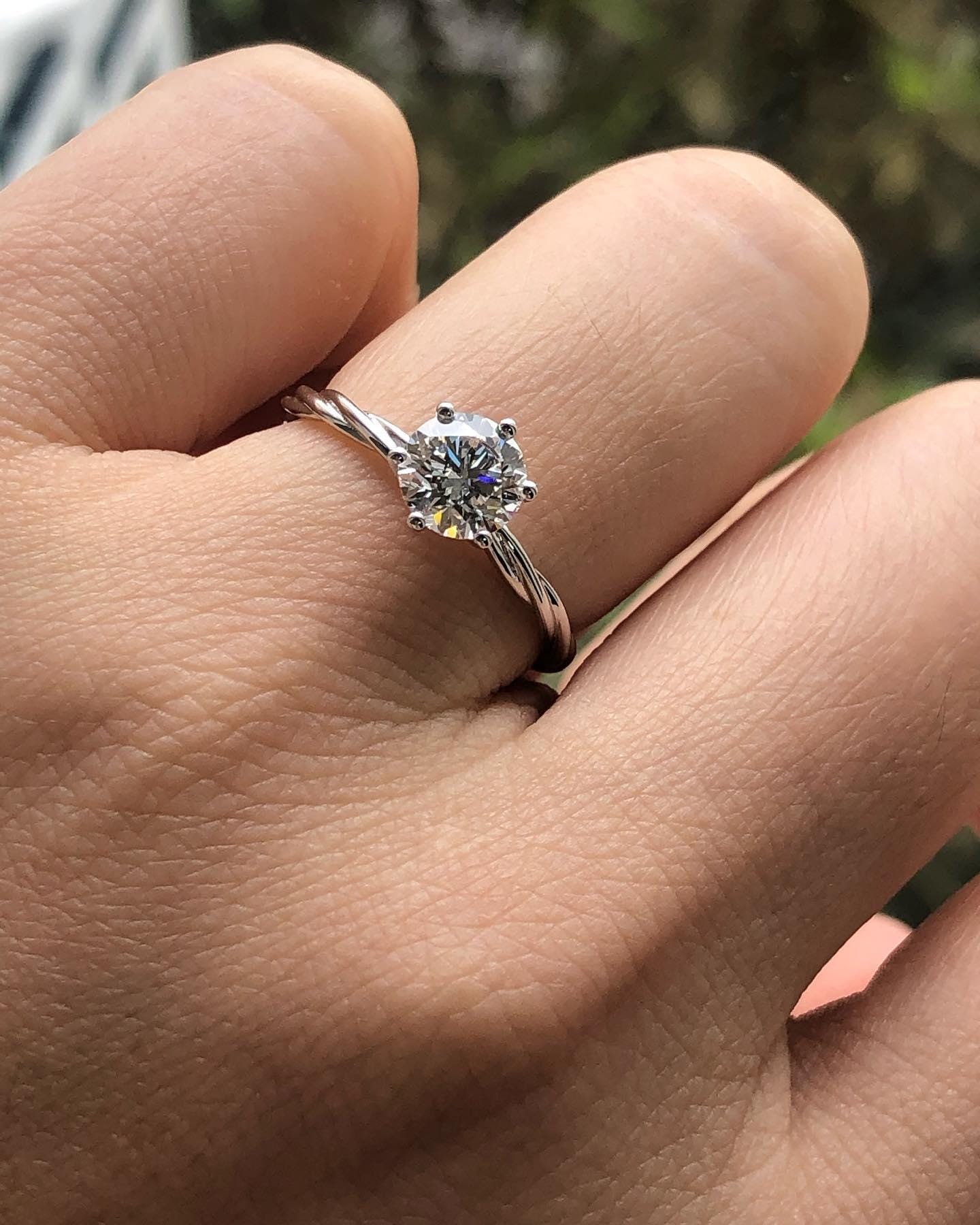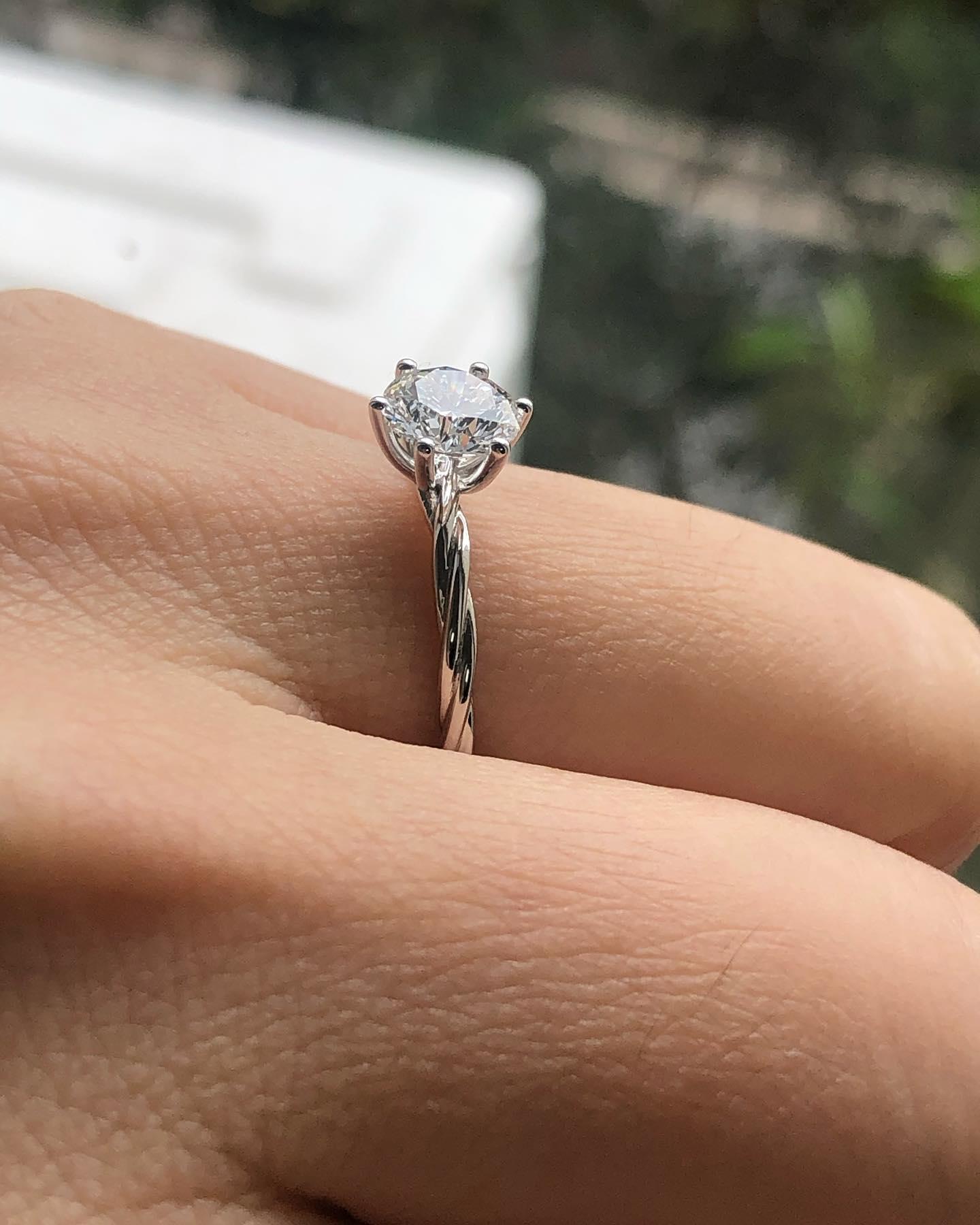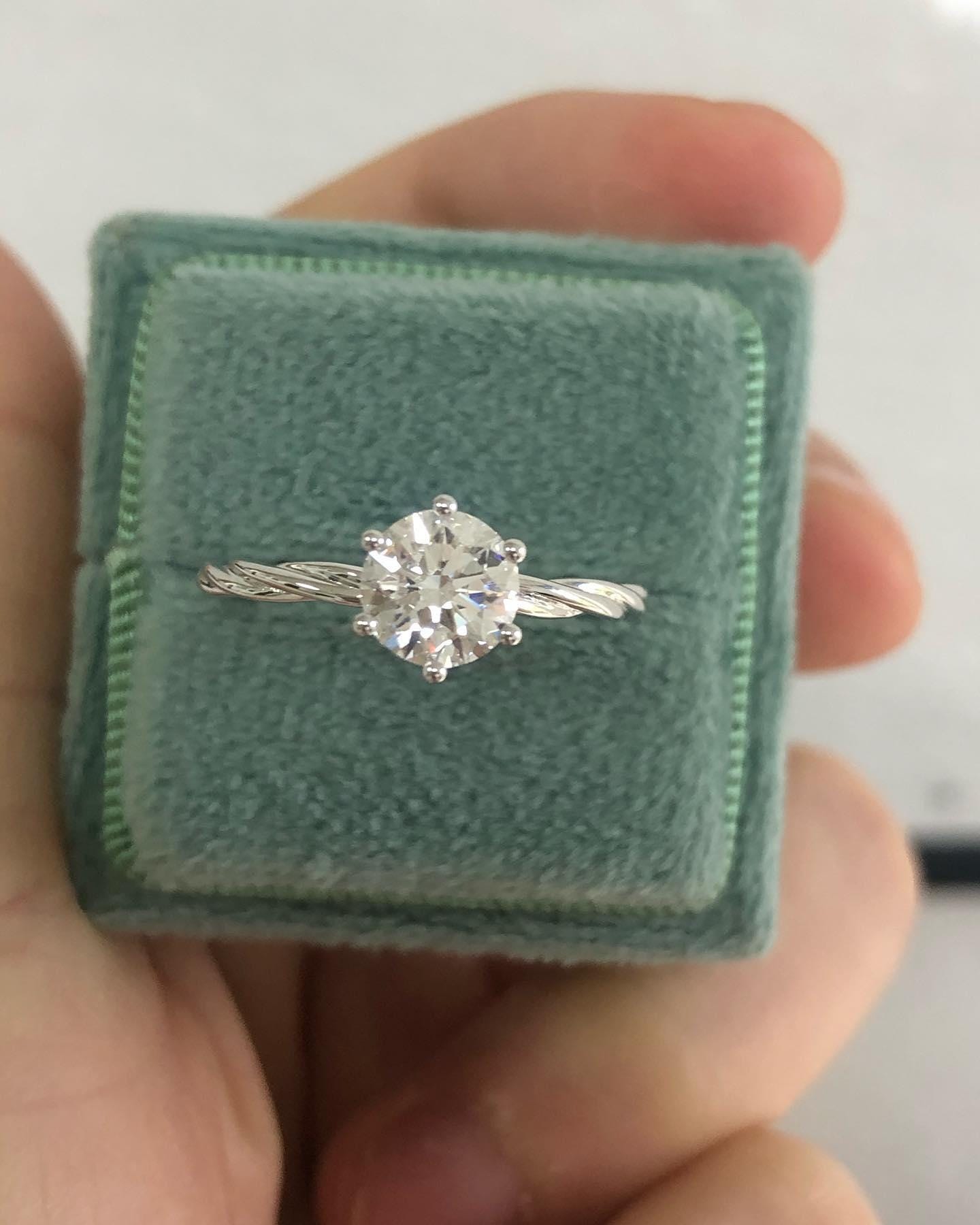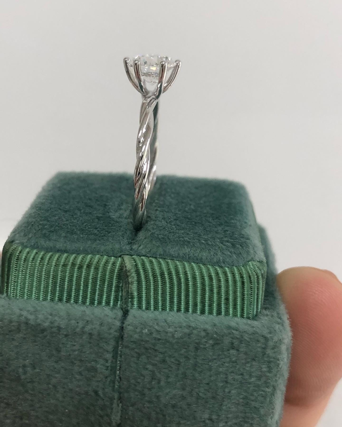 1.50 CT Round Cut Moissanite Engagement Ring Unique Twisted Band Solitaire Ring 14k White Gold Lab Grown Diamond Wedding Promise Ring