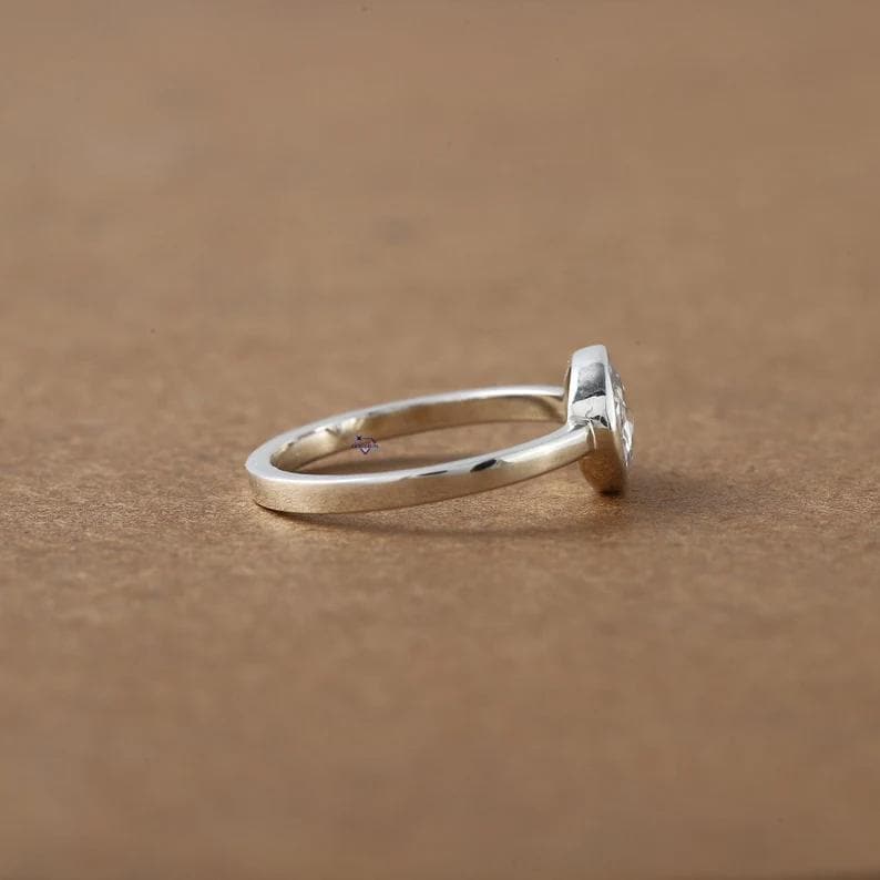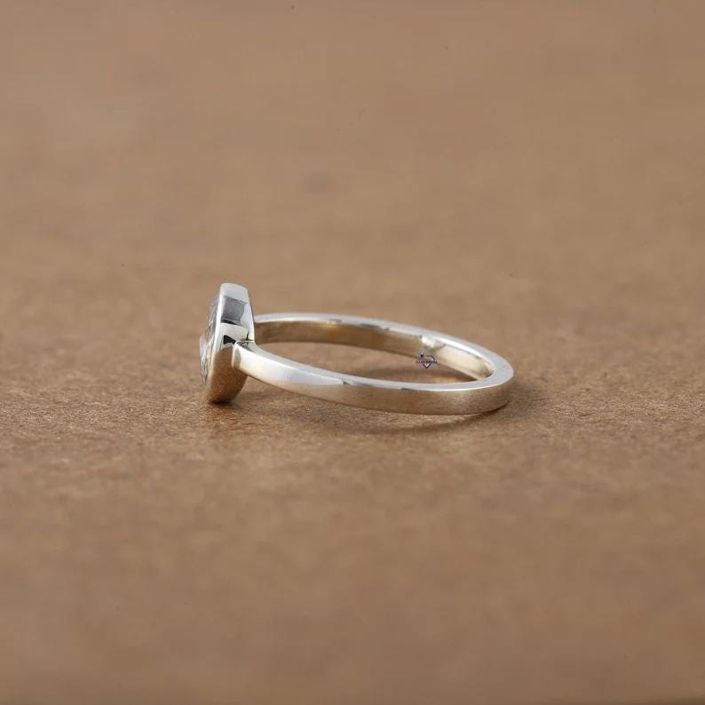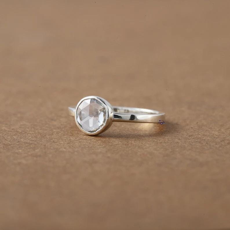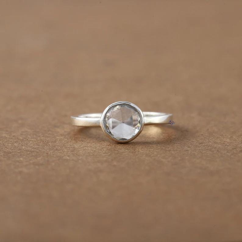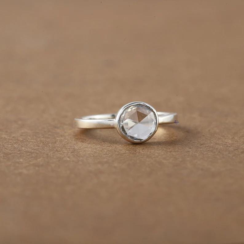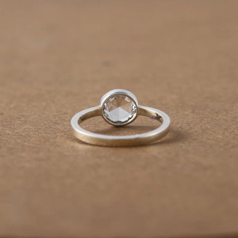 Rose Cut Moissanite Bezel Ring, 14k Gold Minimalist Solitaire Engagement Ring, Round Rose Cut Diamond Alternative, Low Profile Promise Ring