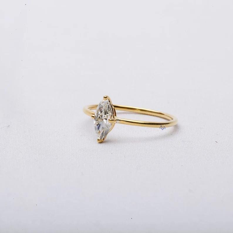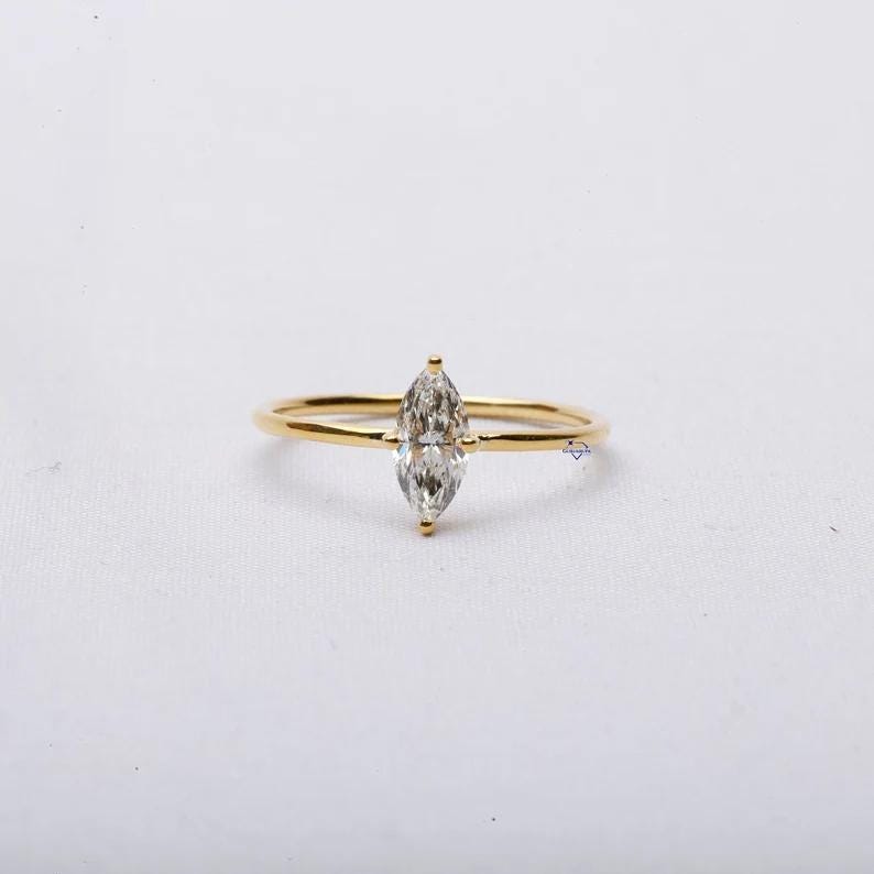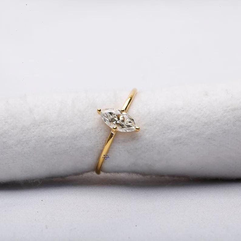 Marquise Cut Diamond Engagement Ring in 14k Gold, Minimalist Solitaire Wedding Ring for Women, Dainty Promising Ring, Unique Bridal Jewelry