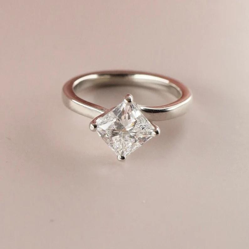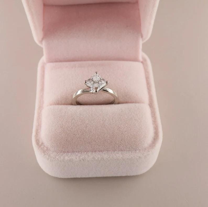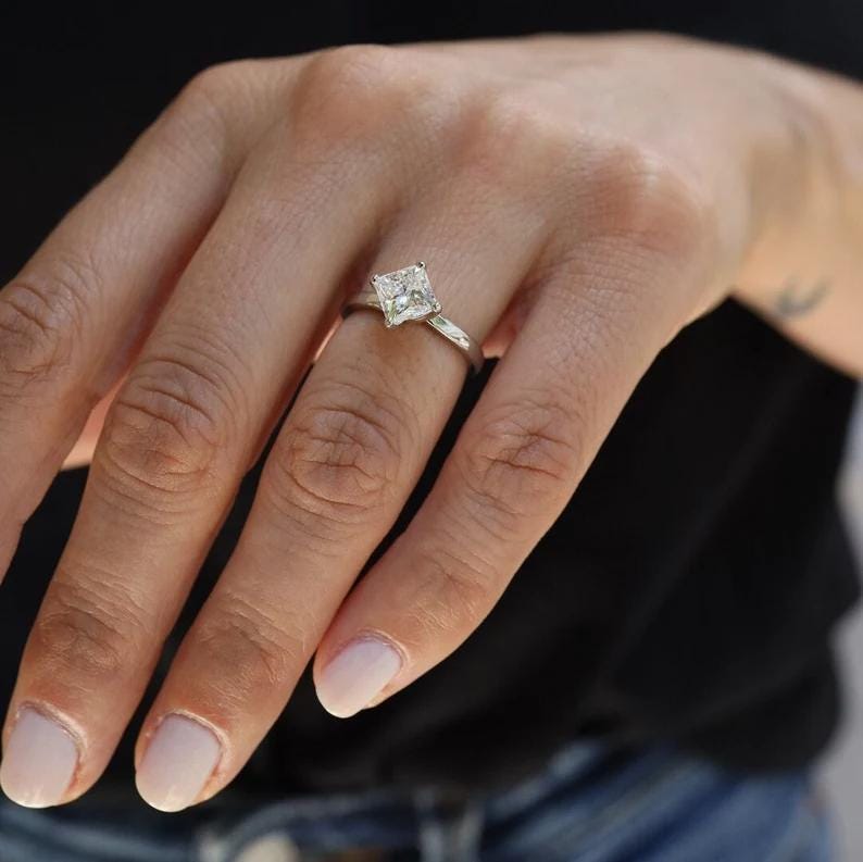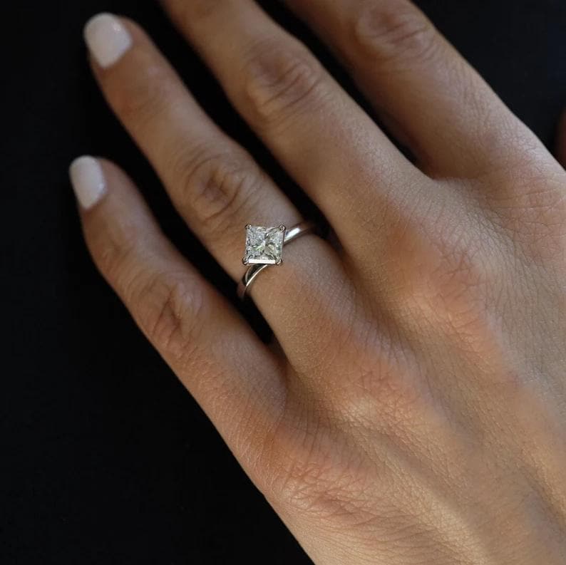 Princess Cut Diamond Engagement Ring in 14k White Gold, Delicate Solitaire Ring, Minimalist Promise Ring for Her, Unique Bridal Jewelry / Princess Ring / Princess Moissanite Ring / 14k Solid Gold Ring / Birthday Gift / Fine Jewelry / Promise Ring / Birthday Gift / Lab Grown Diamond Ring