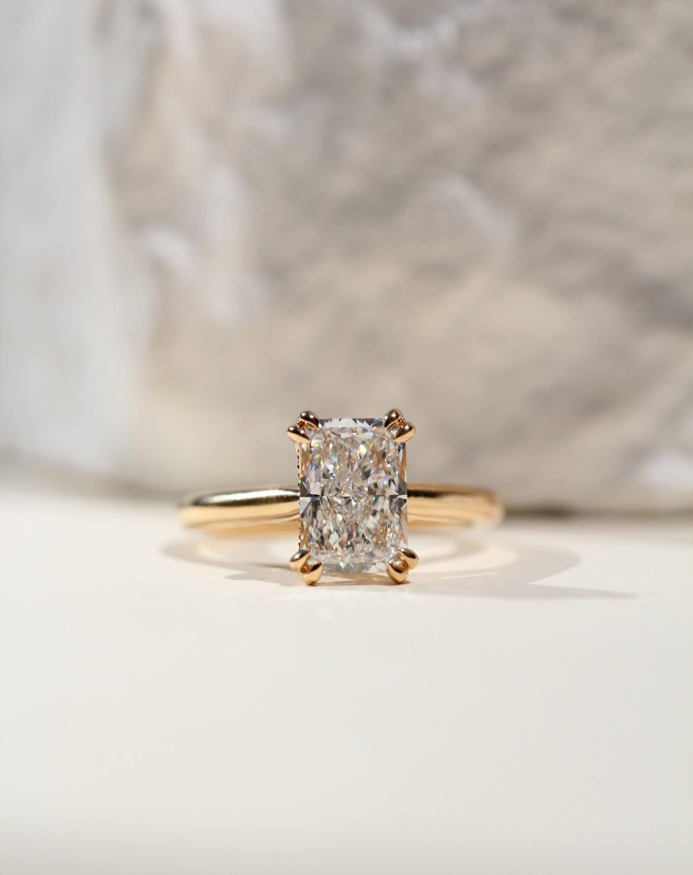 Radiant Cut Moissanite Engagement Ring, 14k Gold Crushed Ice Solitaire Ring, Hidden Halo Wedding Ring for Women, Radiant Diamond Alternative