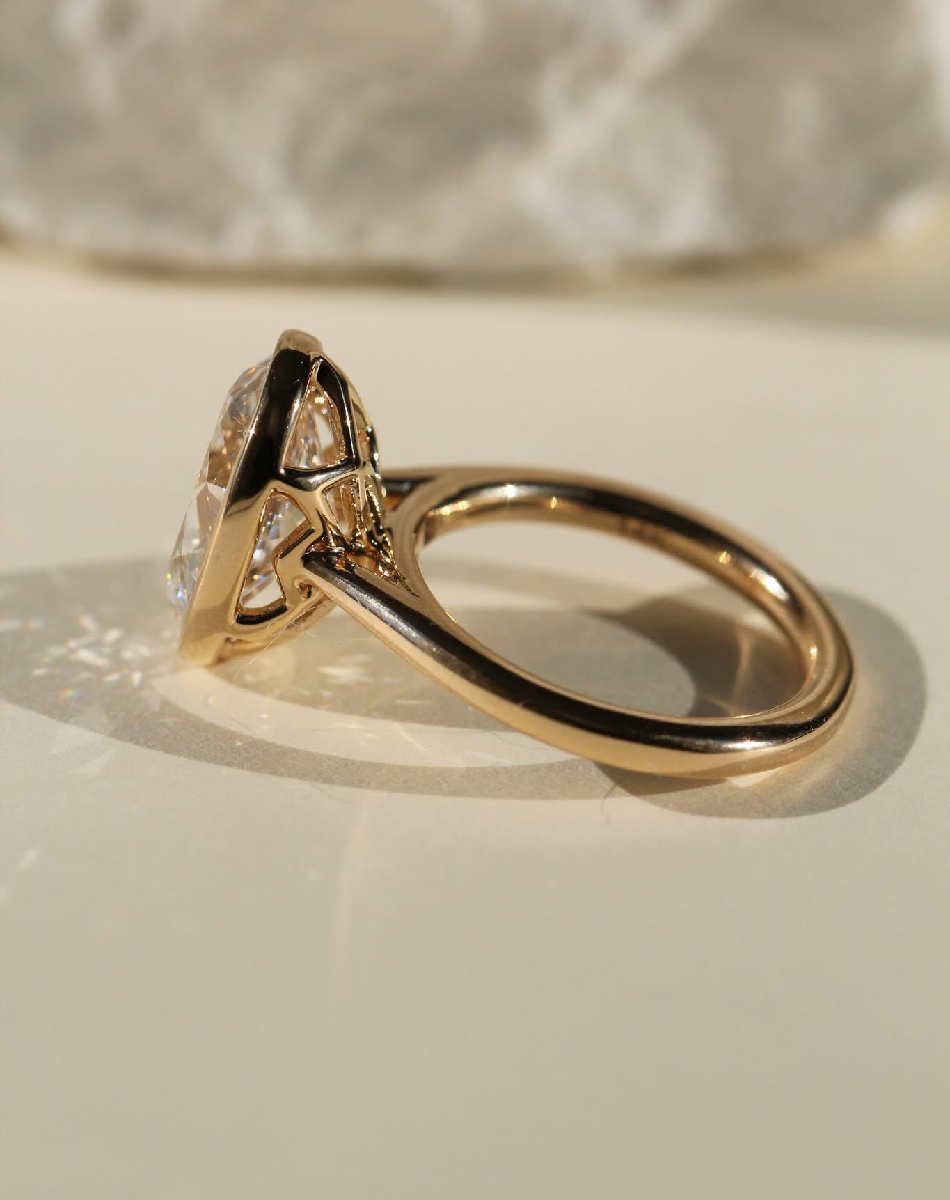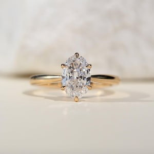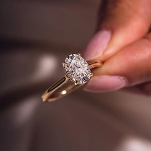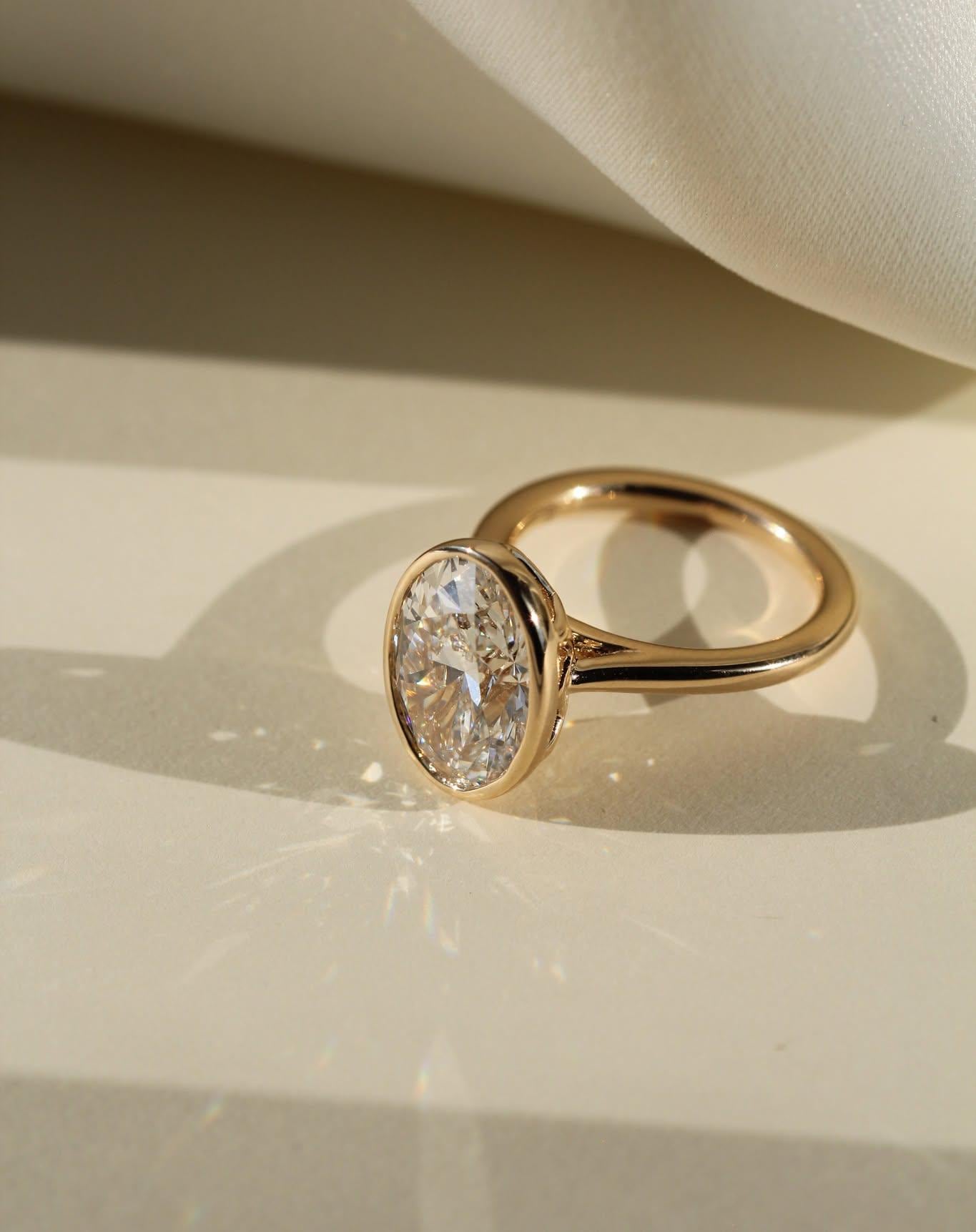 Oval Moissanite Bezel Engagement Ring in 14k Gold, Minimalist Solitaire Wedding Ring for Women, Modern Oval Cut Diamond Alternative Ring