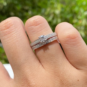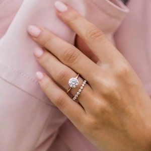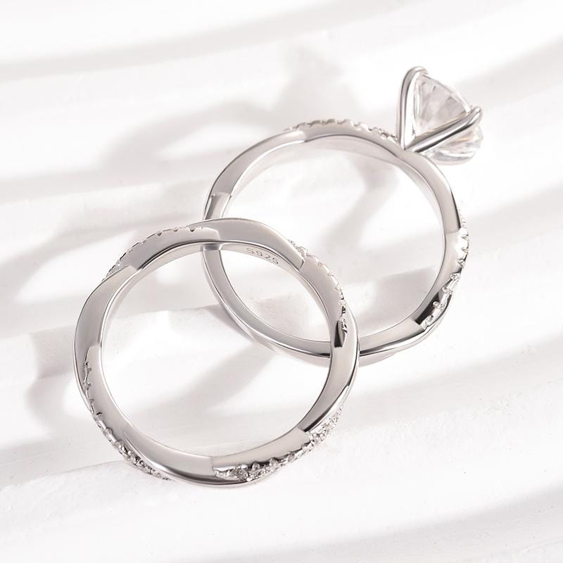 Round Cut Moissanite Stone Twisted Wedding Ring Set, 14k Solid Gold Solitaire Engagement Ring Set, Art Deco Bridal Ring Set for Women