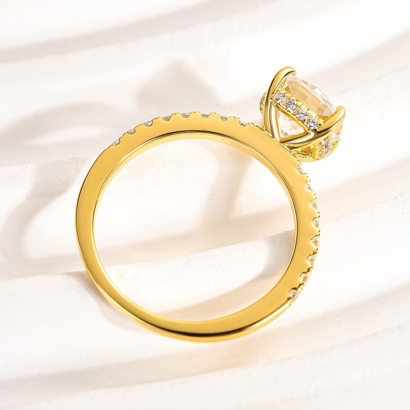 Cushion Cut Moissanite Engagement Ring in 14K Yellow Gold, Hidden Halo Wedding Ring for Women, Lab Diamond Pave Band, Anniversary Gift Ring