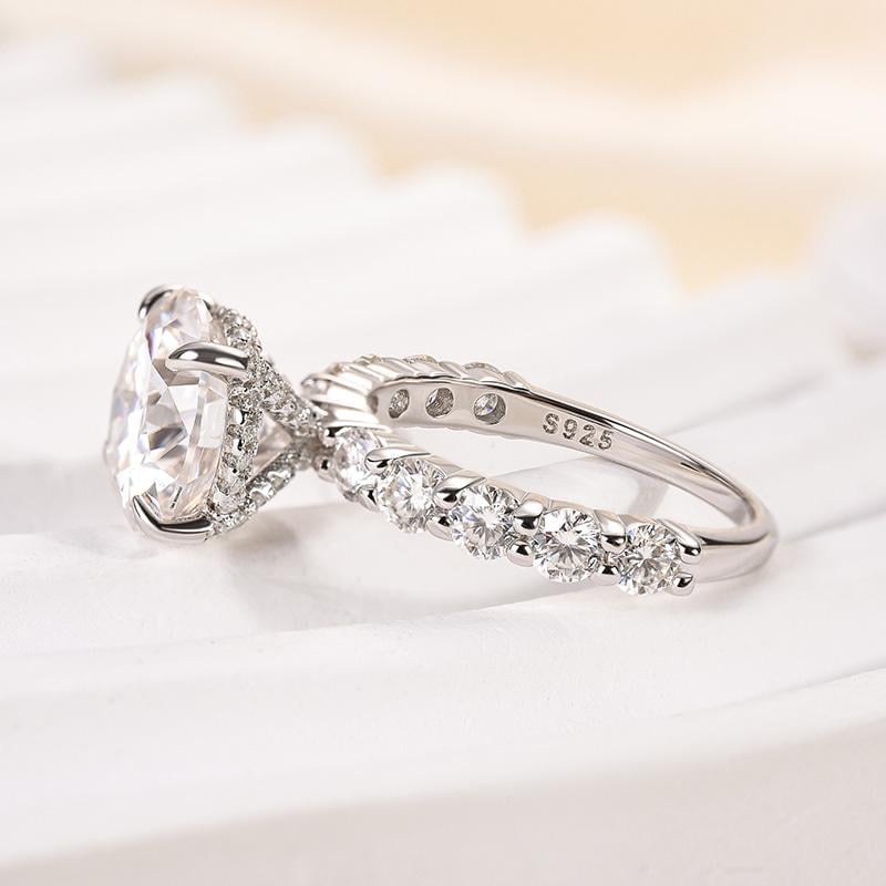 Moissanite Engagement Ring for Women, 2CT Round Brilliant Cut Hidden Halo Ring, 14k Solid White Gold Lab Diamond Wedding Band, Promise Ring