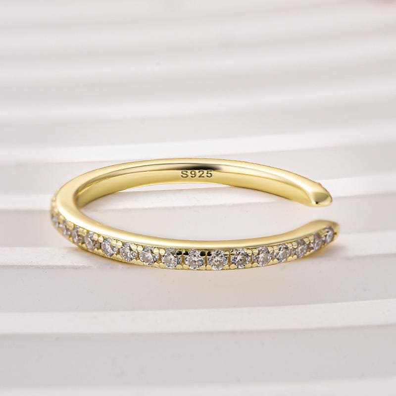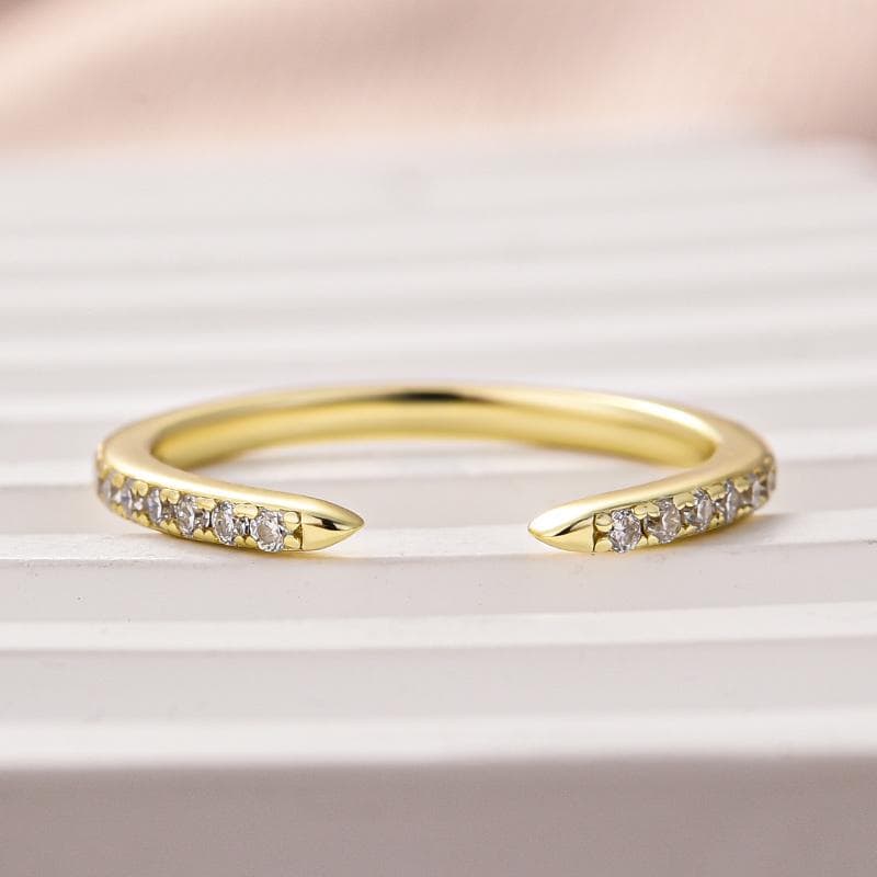 Round Cut Moissanite Open Cuff Wedding Band, 14k Solid Gold Engagement Band, Delicate Promise Ring, Edgy Dainty Diamond Ring, Birthday Gift