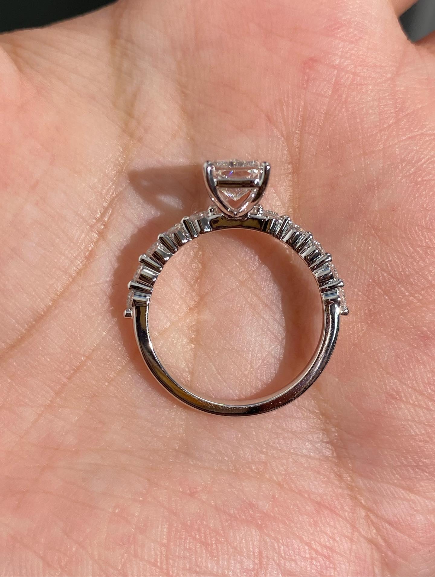2.5 Ct Radiant Cut Moissanite Engagement Ring, Art Deco Radiant Ring, 14k White Gold Bubble Band Ring, Lab Diamond Wedding Ring for Women